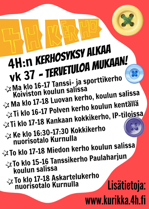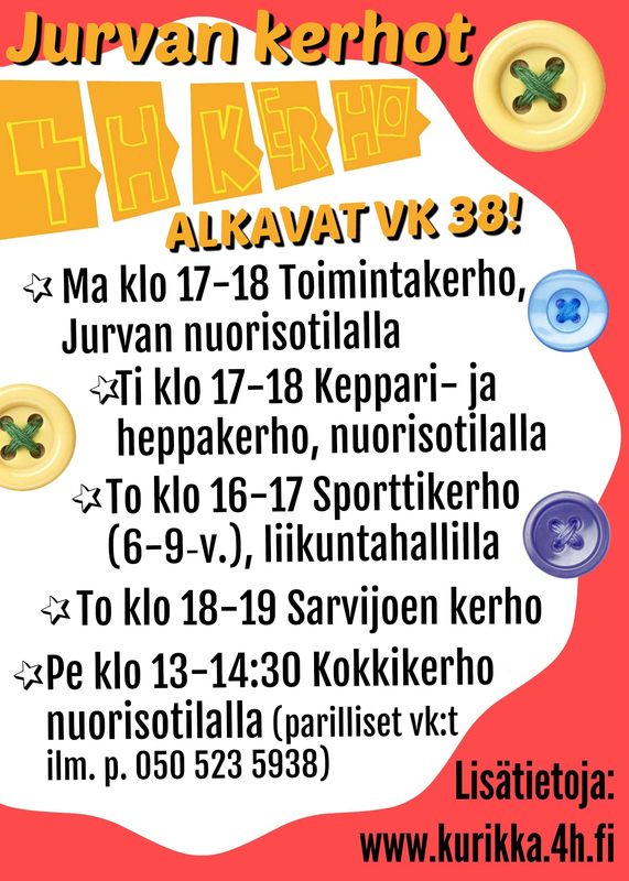 Kurikan kerhot alkavat vk 37 ja Jurvan kerhot vk 38!