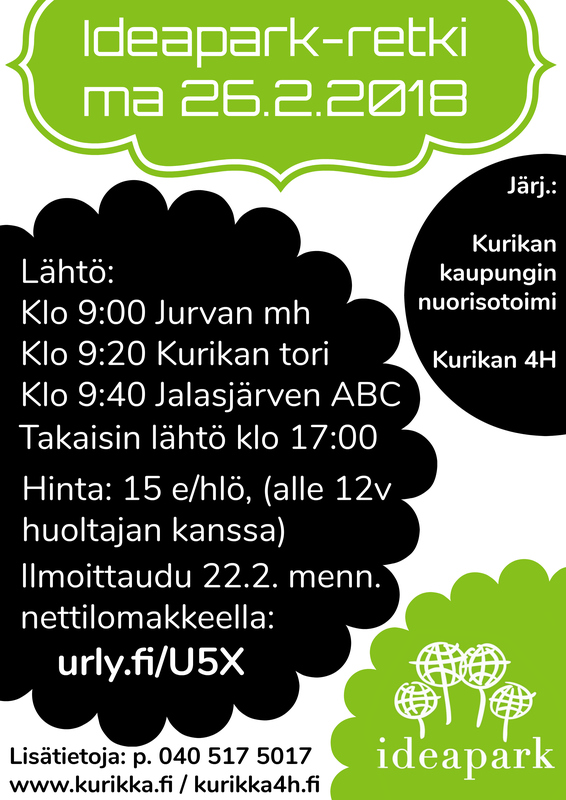 *Ma 26.2. Retki Ideaparkiin (ilmoittaudu mukaan 22.2. mennessä sähköisesti täältä)!