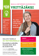 ti 28.4. Mitä tekis, että maksettais?!Oman yrityksen ideahautomo. Autamme sinua luomaan itsellesi sopivan tulonlähteen. Yritysidea voi saada alkunsa esimerkiksi omasta harrastuksesta tai kiinnostuksen kohteesta. ti 5.5. Yritys pystyyn!4H-yrityksen perustaminen. Saat kaiken tarvittavan neuvon ja tuen yrityksen perustamiseksi. Teet liiketoimintasuunnitelman, joka vastaa kysymyksiin mitä, kenelle ja miten. Voit työllistää itsesi 4H-yrityksen avulla päivän, kesän tai koko vuoden ympäri. ti 12.5. 4H-yritys mainittu! Markkinointi ja maineen hallinta. Käymme läpi markkinoinnin perusasoiden lisäksi somen mahdollisuuksia ja opettelemme mainosvideointia. ti 19.5. Massia tulee, massia menee! Yrityksen talousosaaminen. Oman palvelun tai tuotteen hinnoittelu, kirjanpito, maksuliikenteen vaihtoehdot. ti 26.5. Virallinen osuus! Mitä jokaisen yrittäjien täytyy tietää. Y-tunnuksen merkitys ja sen hakeminen, verotus. Ota rohkeasti yhteyttä: Mari Viljanmaa puh. 040 5909 618, yrityskoordinaattori.seinajoki(at)4h.fi